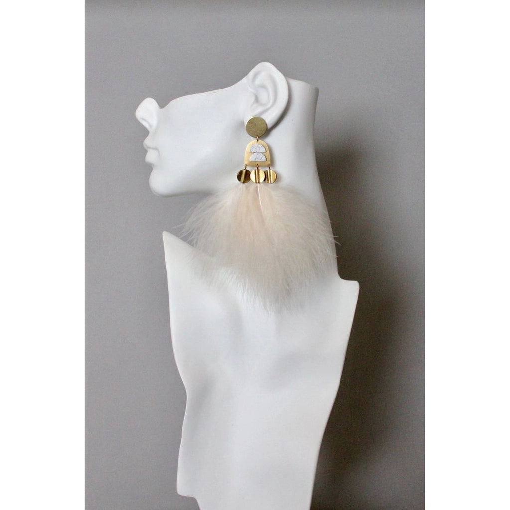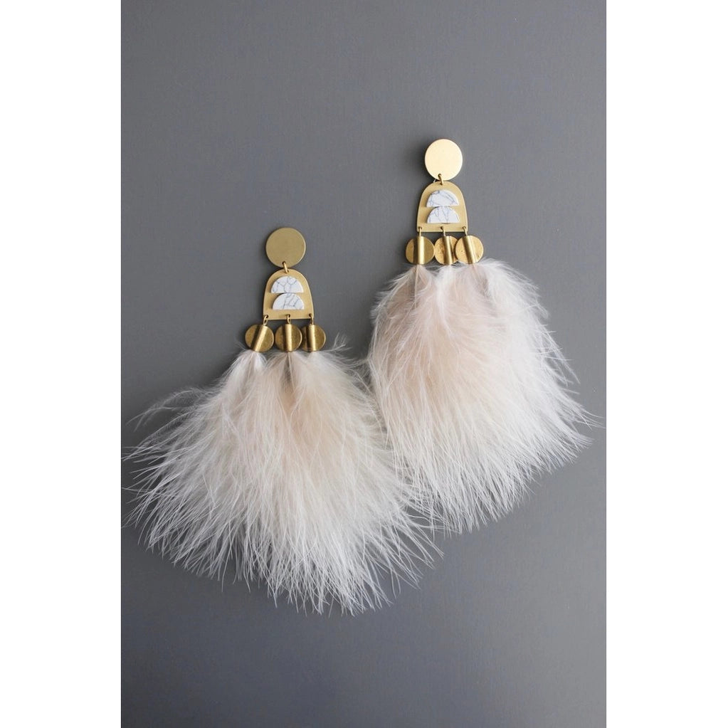Brass hypoallergenic surgical steel posts with blush feathers.