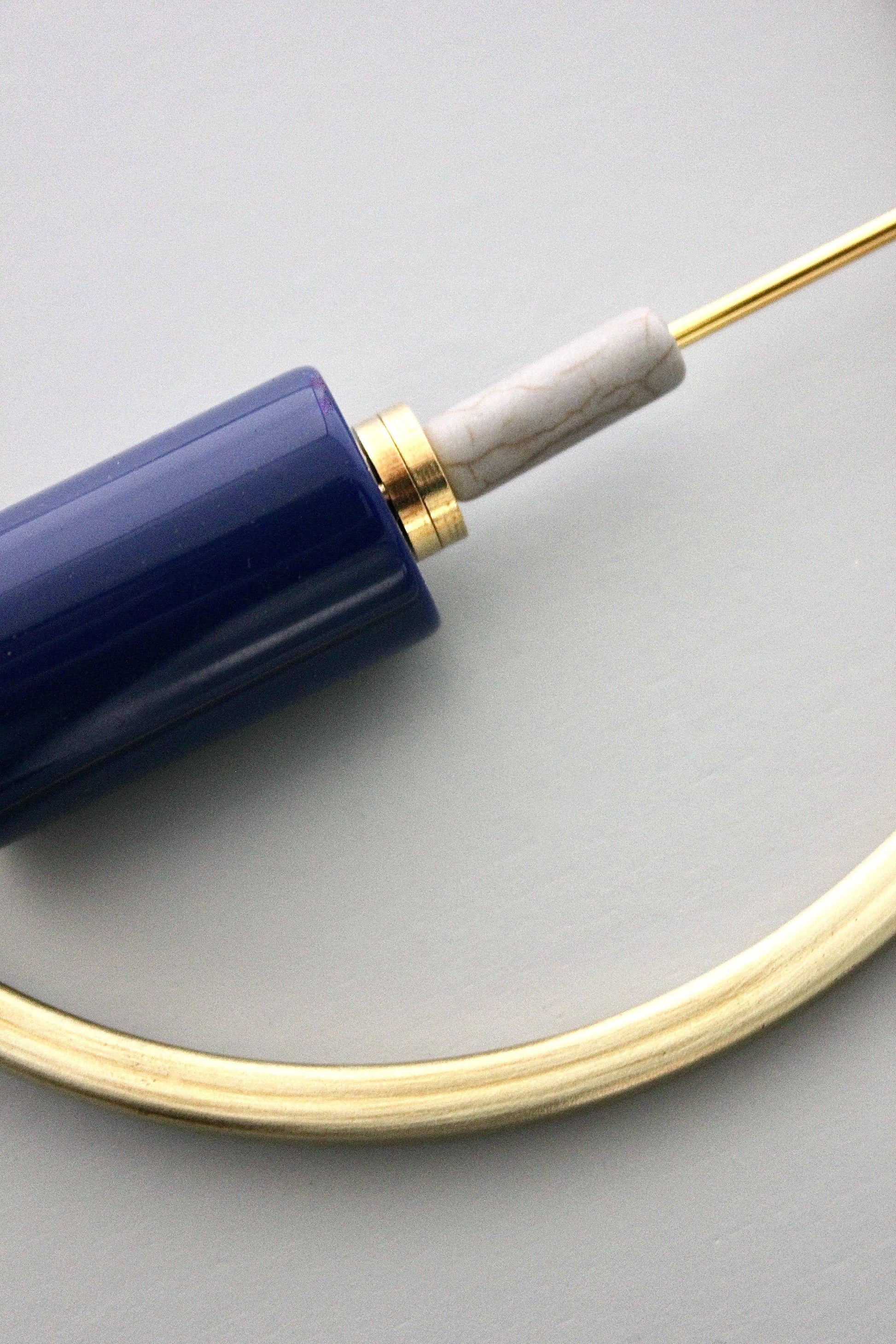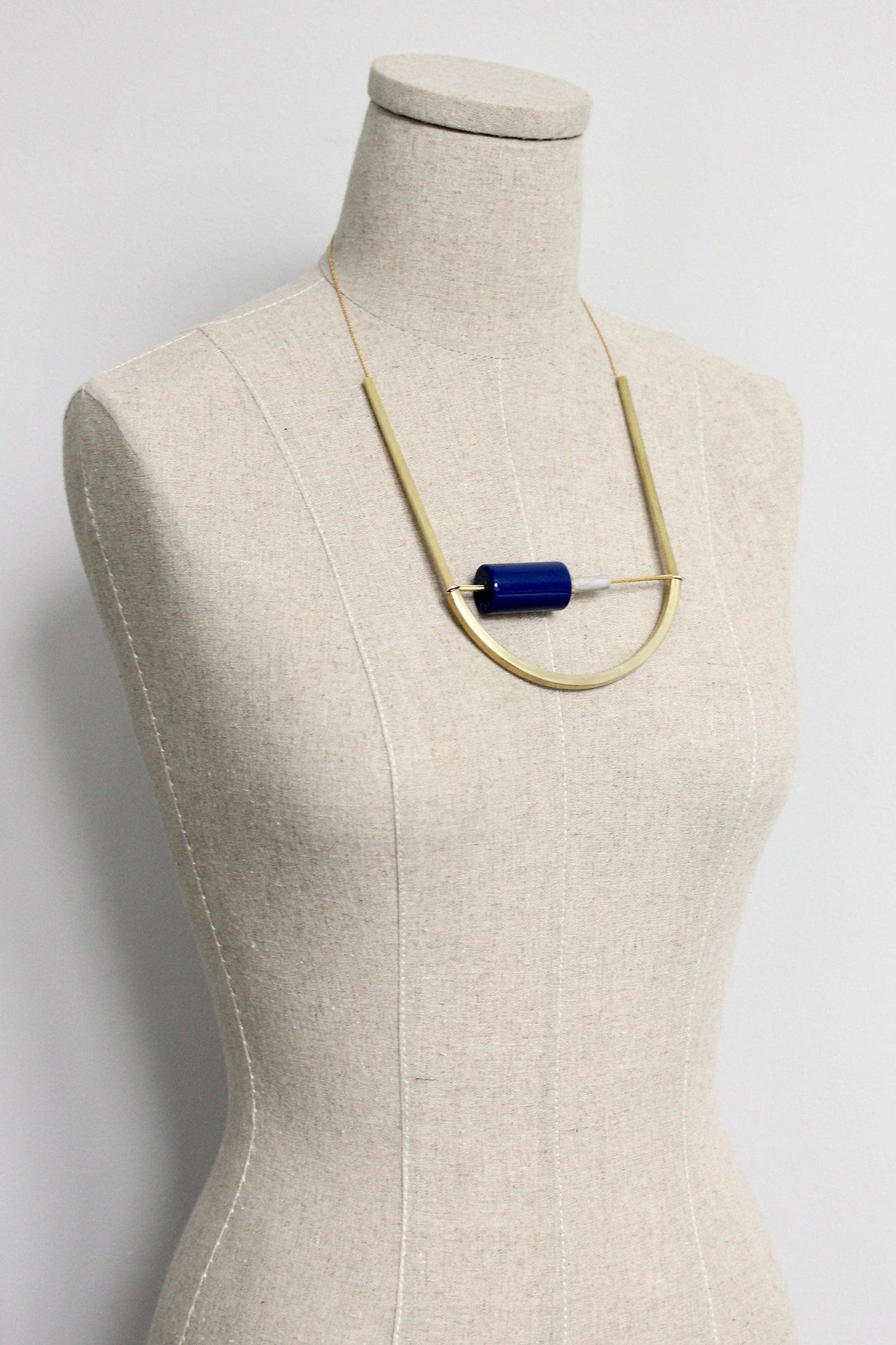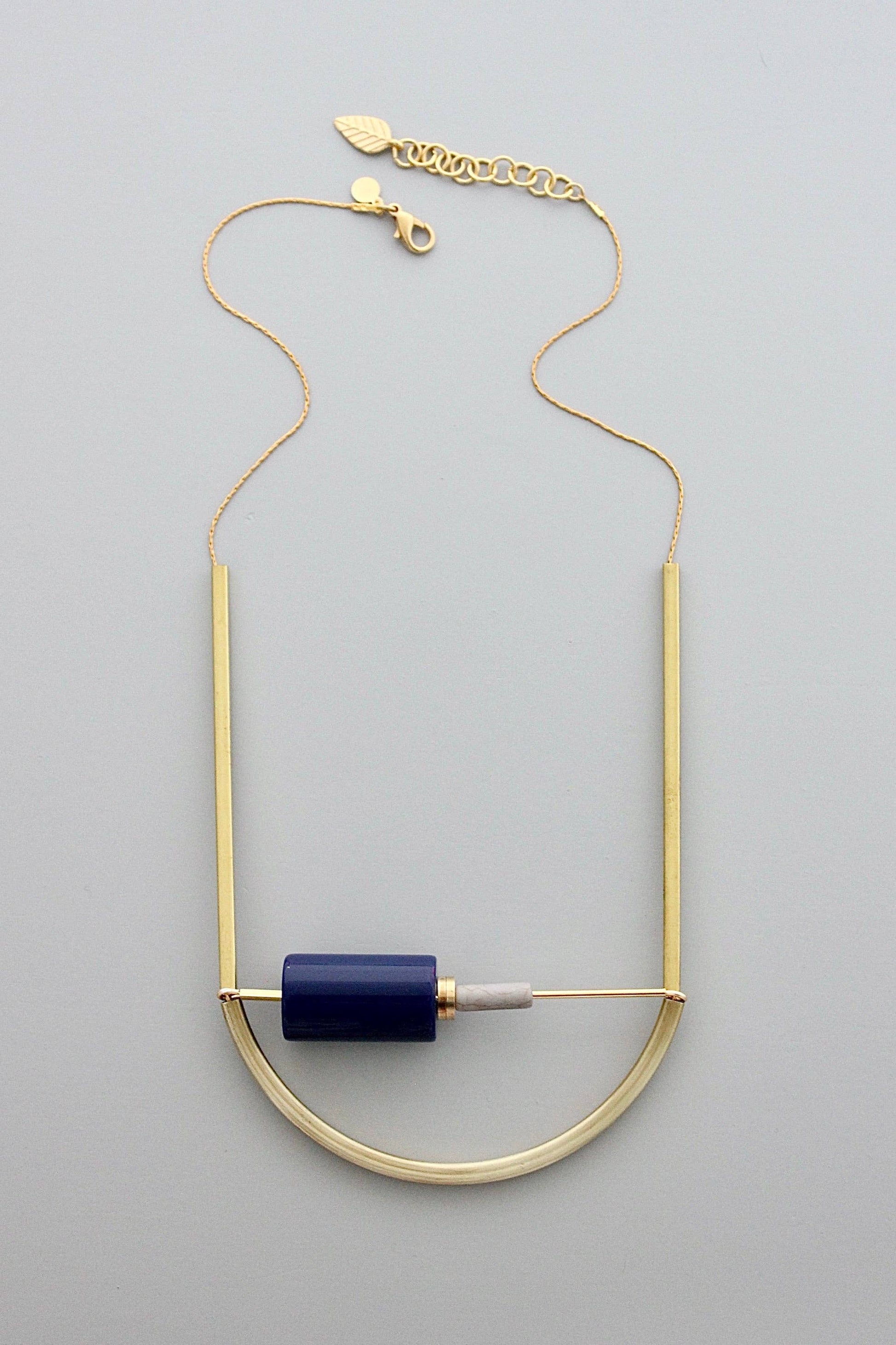 22” necklace with gold plated chain, vintage lucite, magnesite, and brass. 2 inch