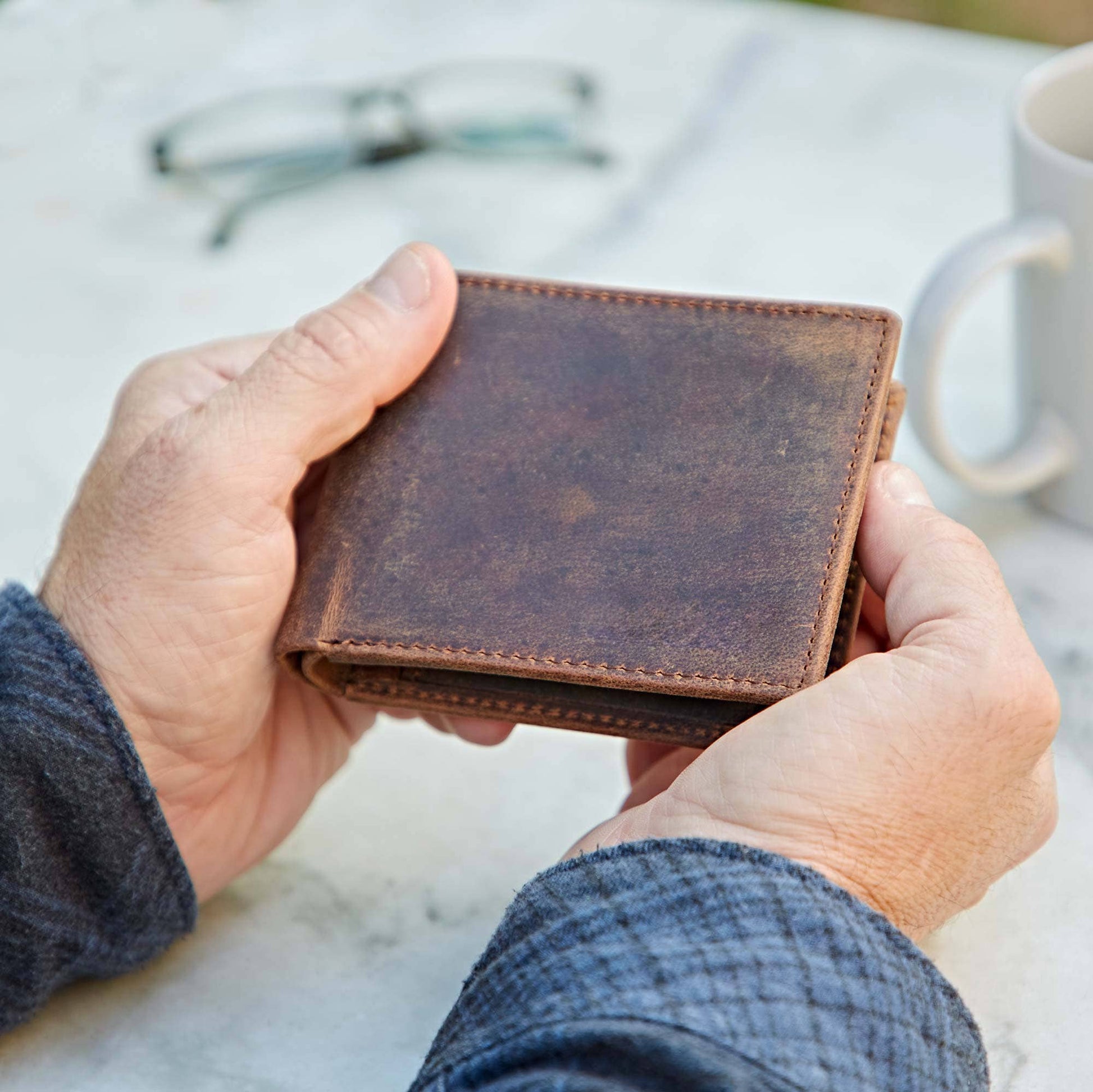 A classic billfold wallet but better. Hand crafted from hard-wearing, high-quality buffalo leather, this leather wallet is made to stand the test of time. Thoughtfully designed, it’s the perfect gift for him. This wallet is RFID-blocking. Flip the wallet open to reveal 7 separate card slots, 2 sections for notes and receipts, and a small pouch for coins, secured with a metal popper.