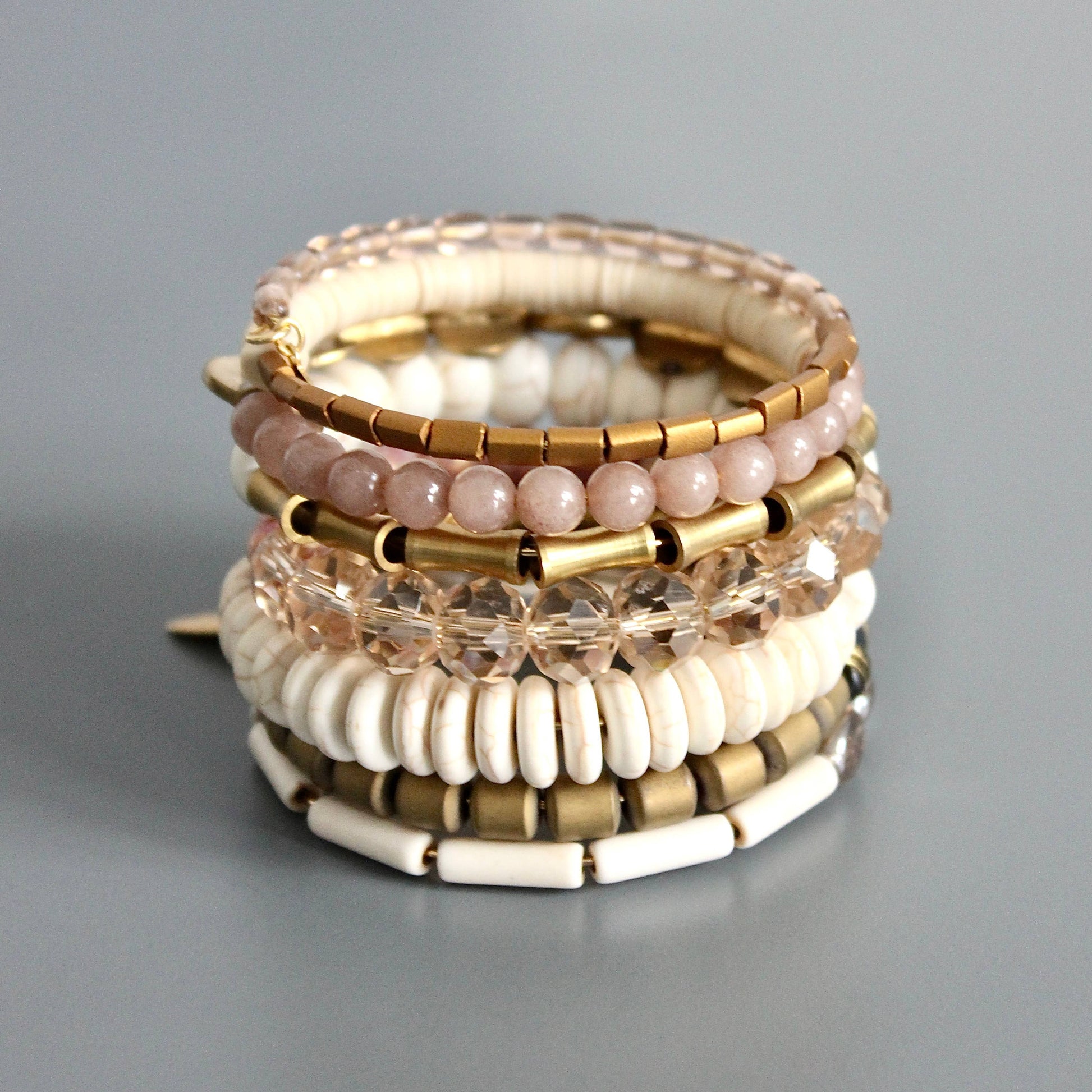 49 inch wrap bracelet with glass, hematite, magnesite, brass, vulcanite, and jade.