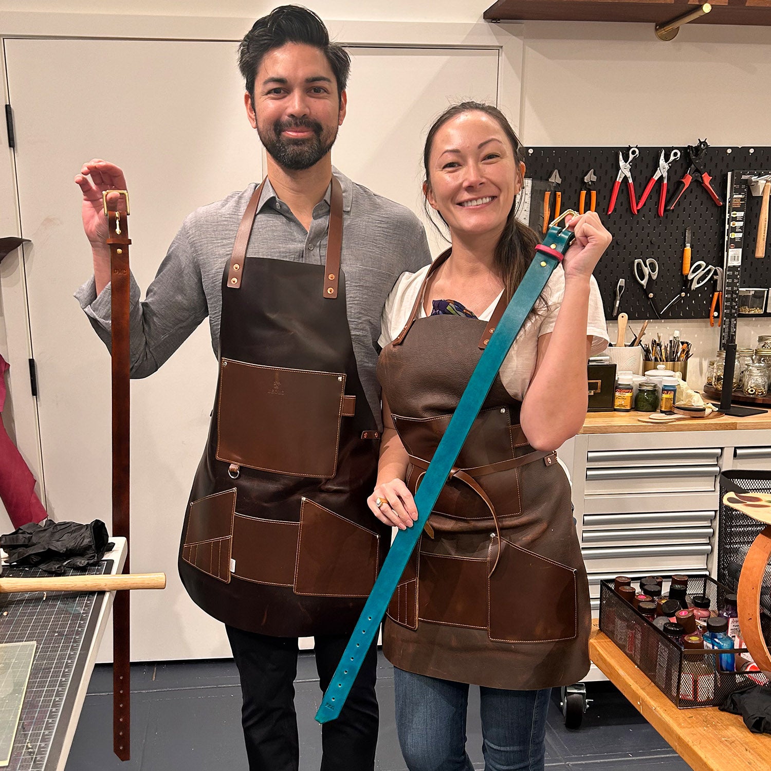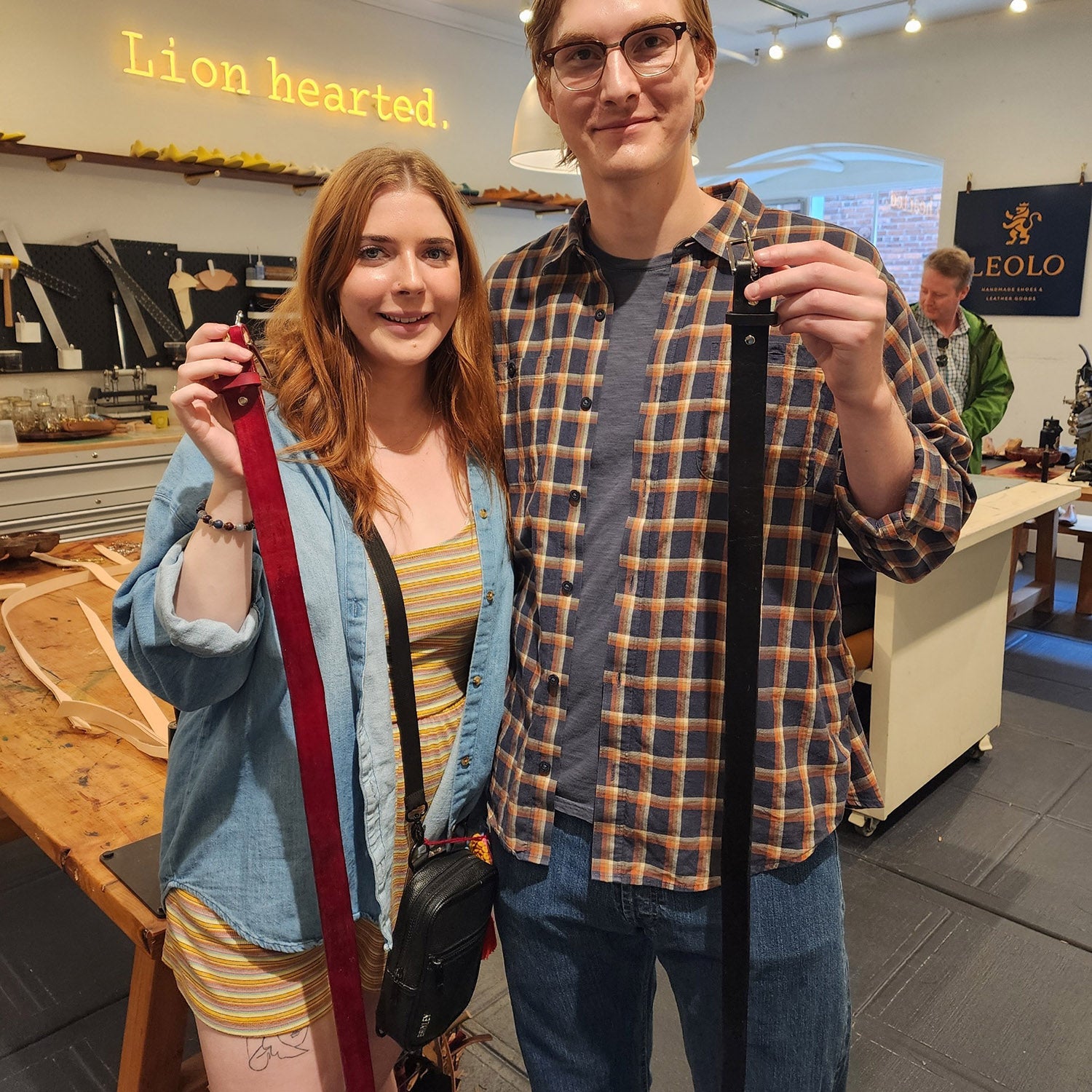 Join us for an engaging, hands-on belt-making workshop in Leolo's Pike Place Market Atelier (In the market Atrium at 93 Pike St., Suite 103. Directly below Tenzing Momo and Crepe de France). At the end of this belt-making workshop, you will leave with a beautiful, full-grain hand-dyed veg-tan leather belt complete with solid brass or silver hardware belt that YOU made!