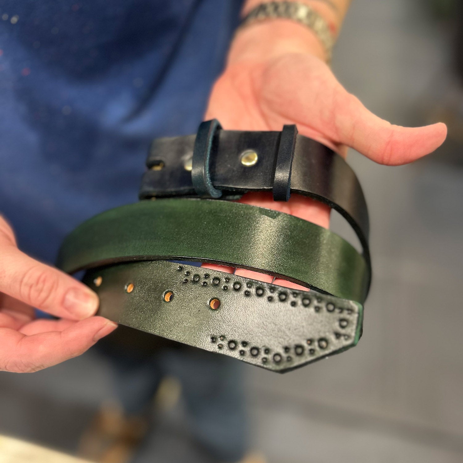 You will select the leather dye color of your choice, stamp, engrave, or tool the leather, size the belt precisely to your liking, and work with mallets, rivets, skivers, punches, edge bevels, and burnishers…as you construct and personalize a belt that will last a lifetime!