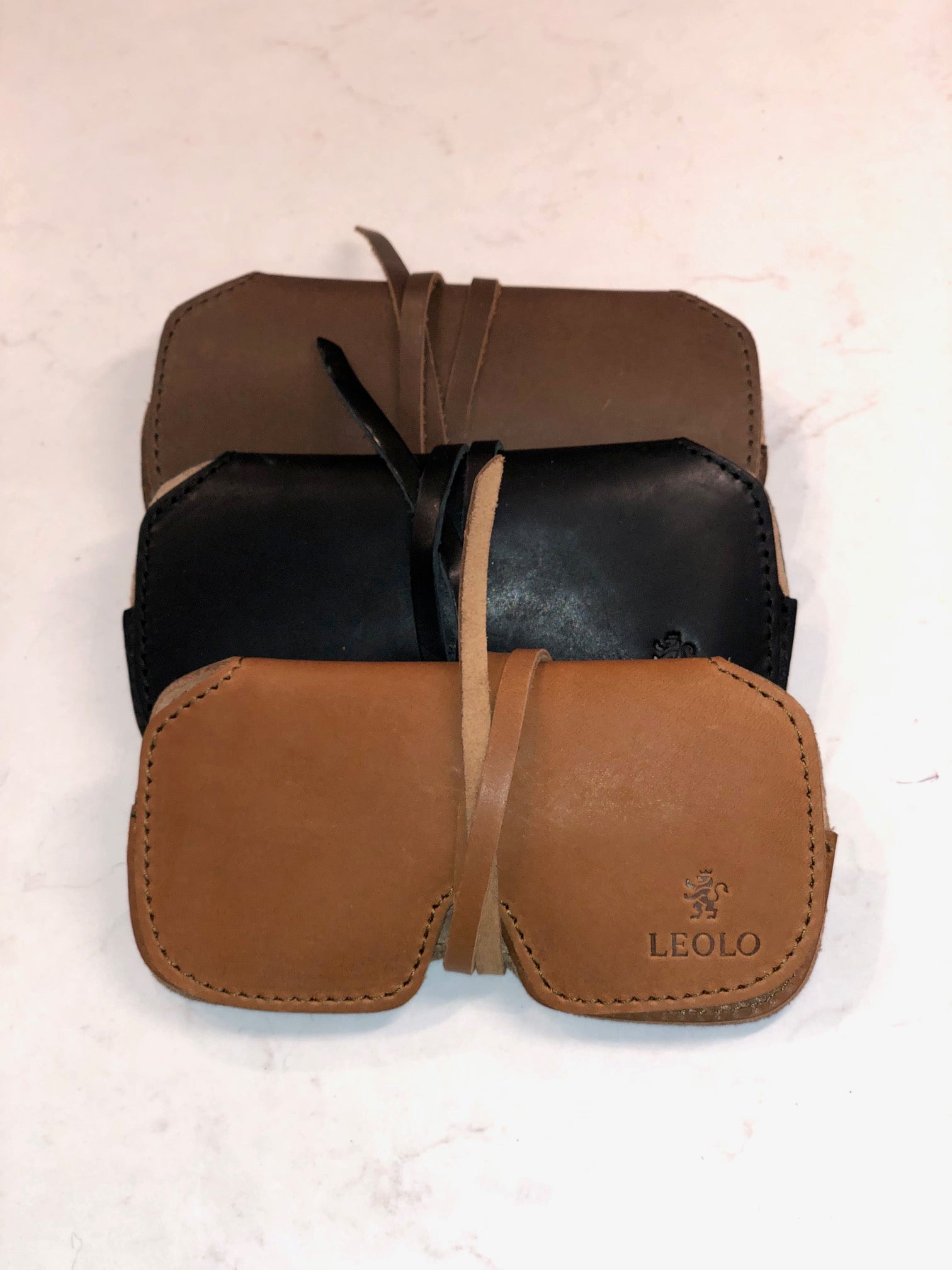 100% full grain leather glass case. Smooth lining will protect your lenses and a wraparound leather closure will keep them secure.