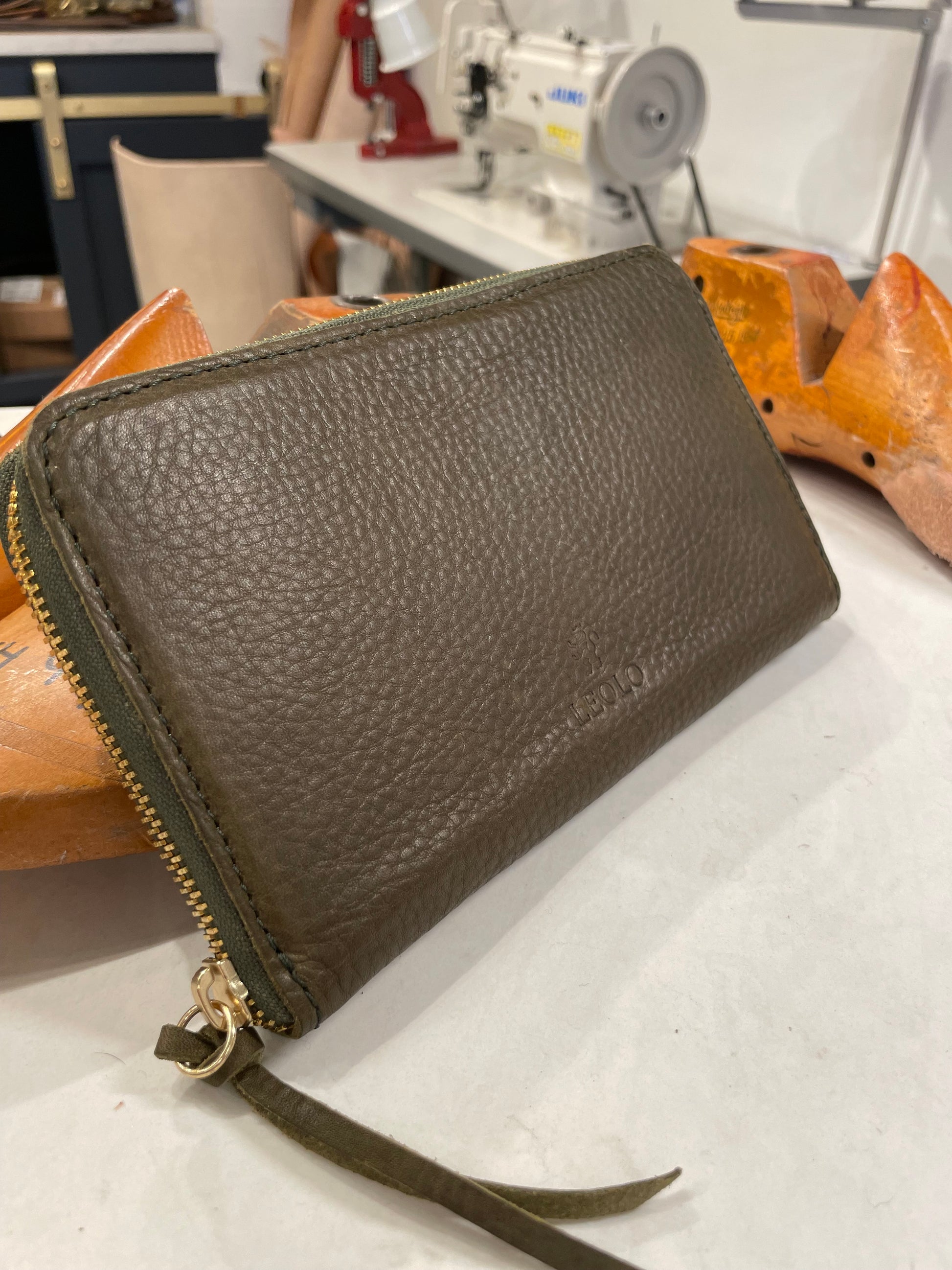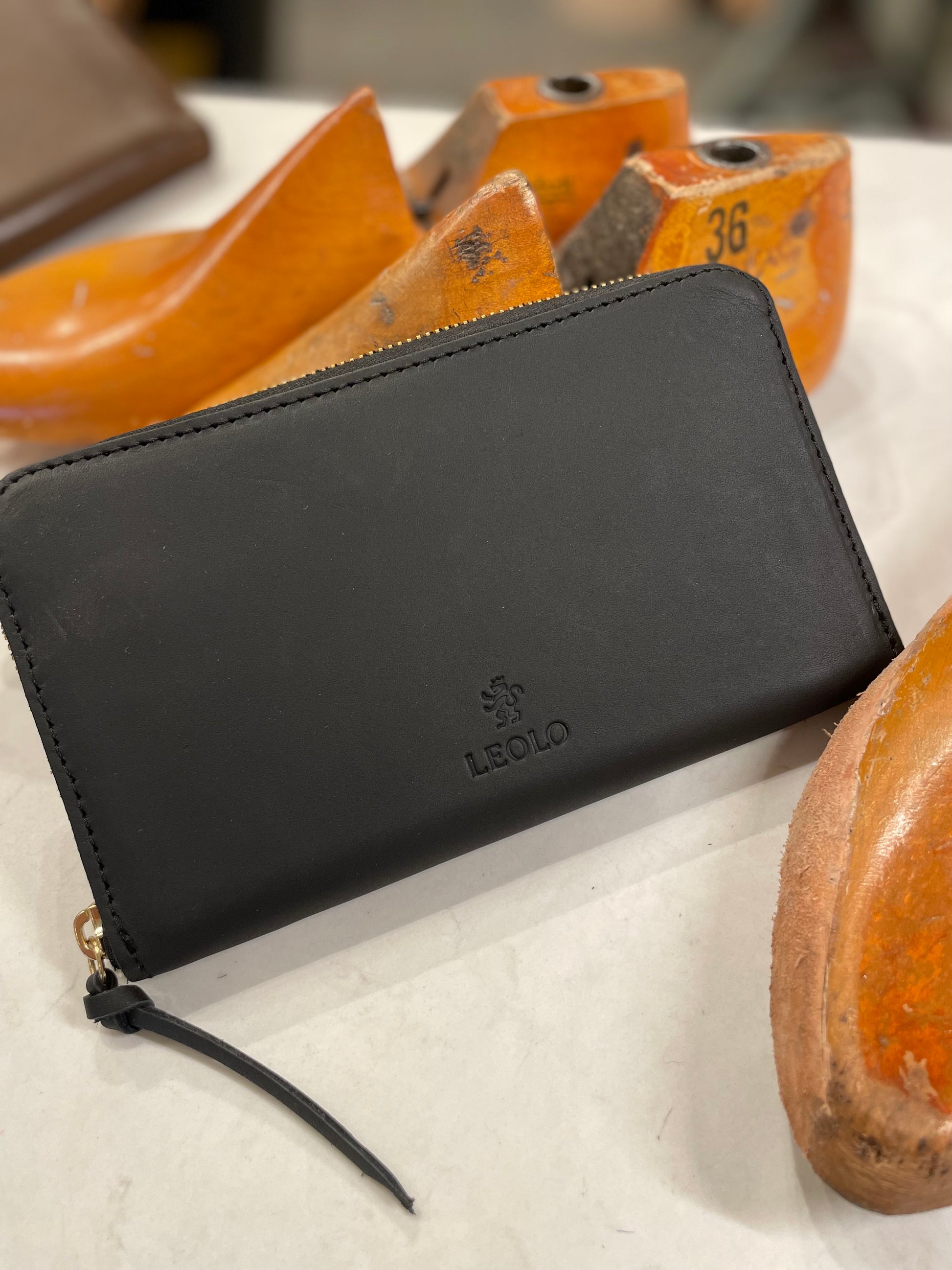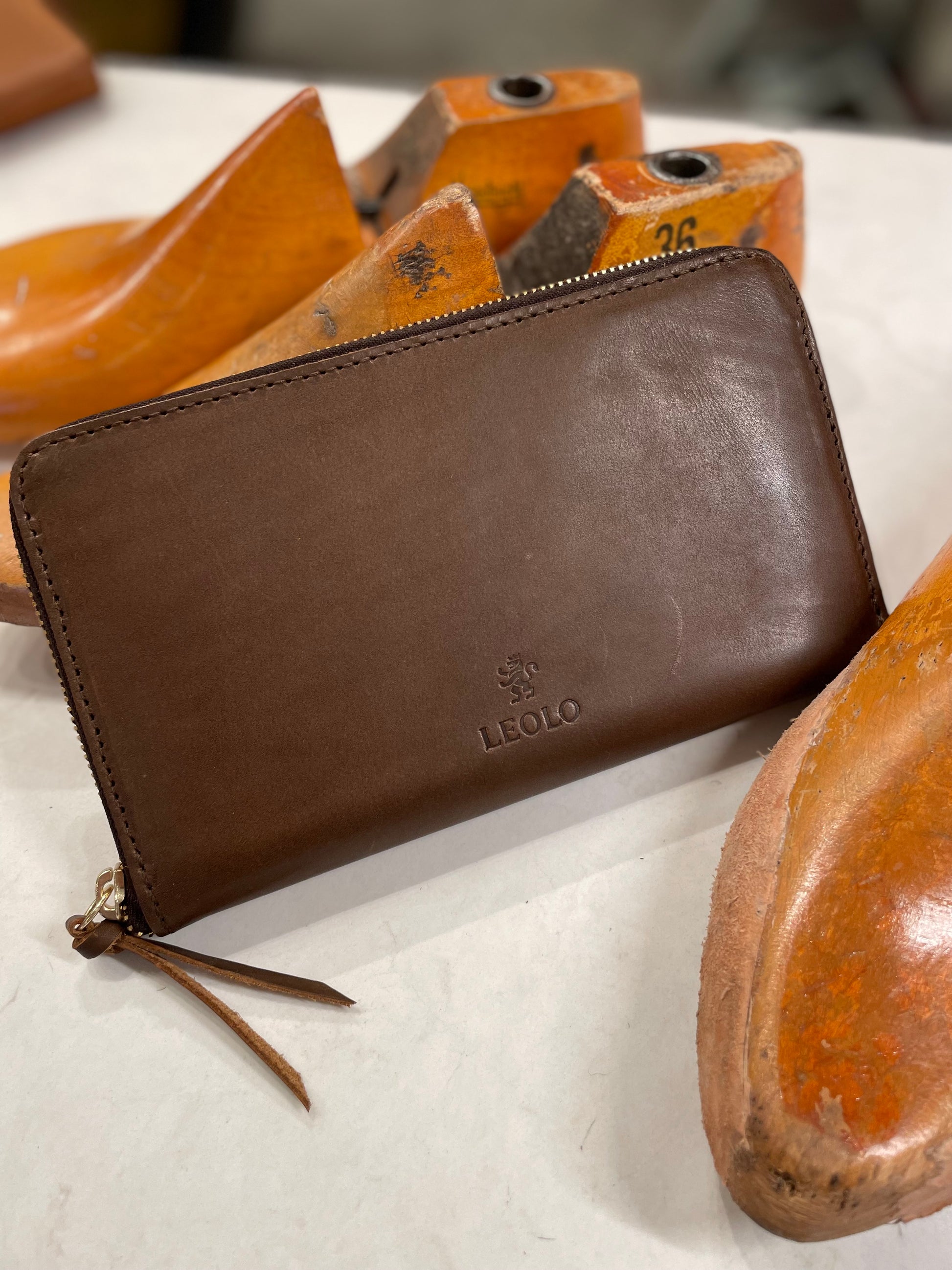 A classic beauty of quality and durability. The Leolo Zip Around Wallet is made of 100% full grain leather with durable nylon thread and a smooth, quality zipper. 8" x 5" (closed)