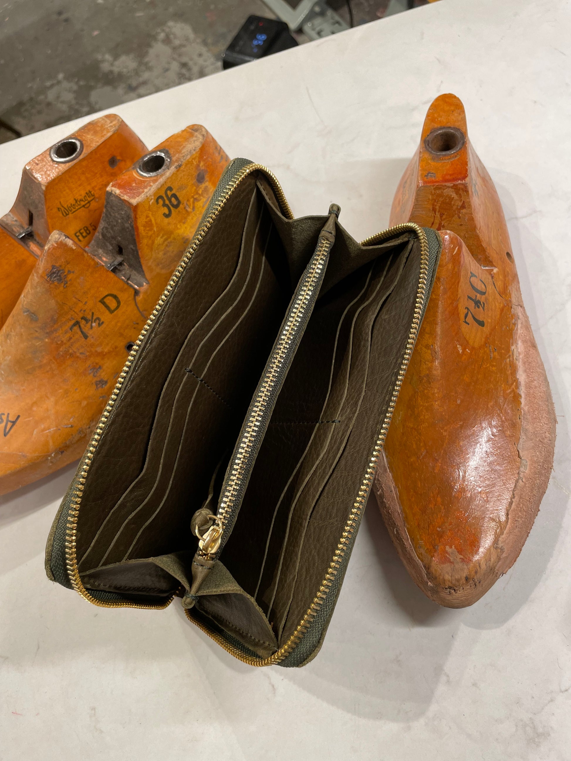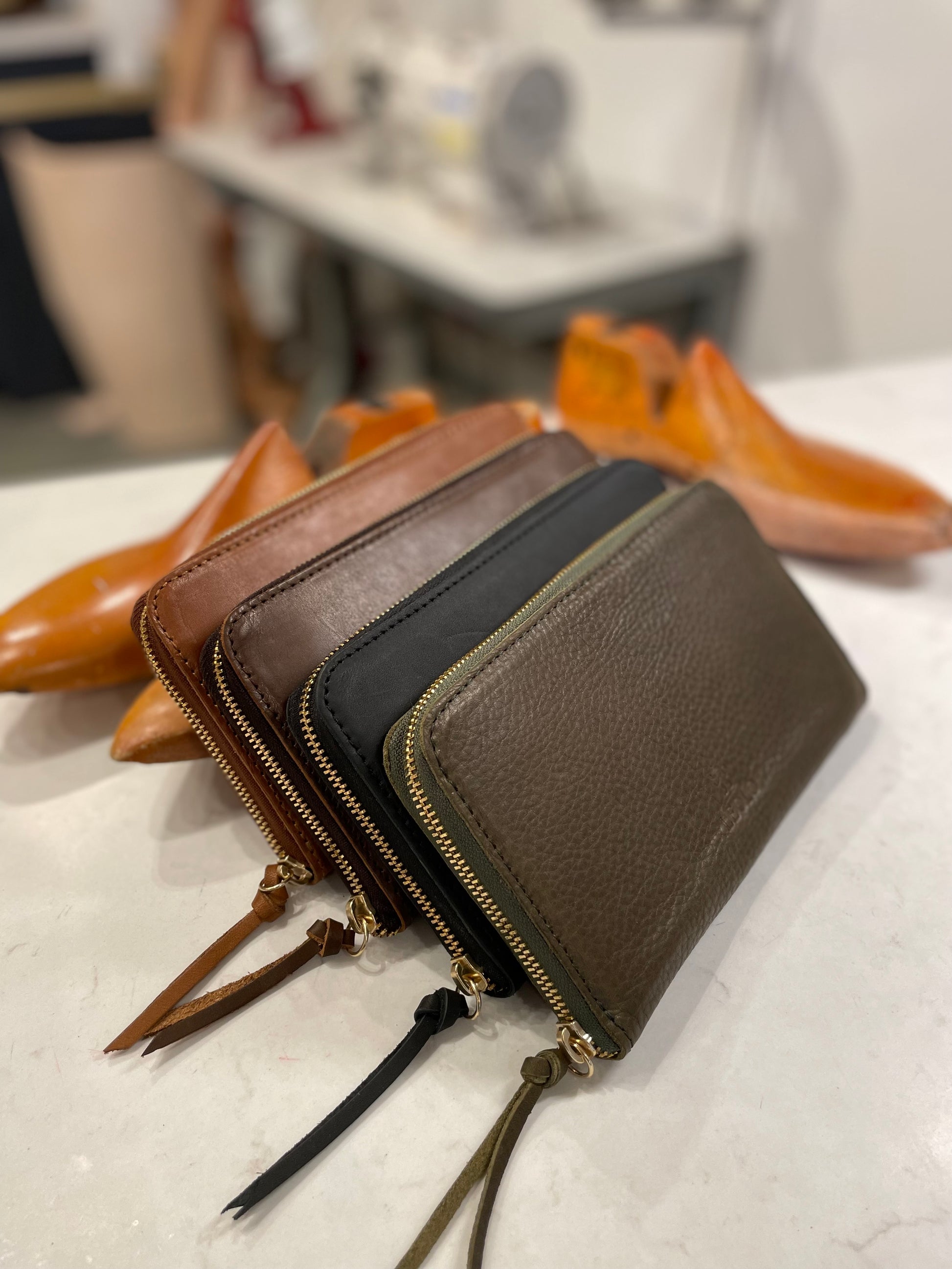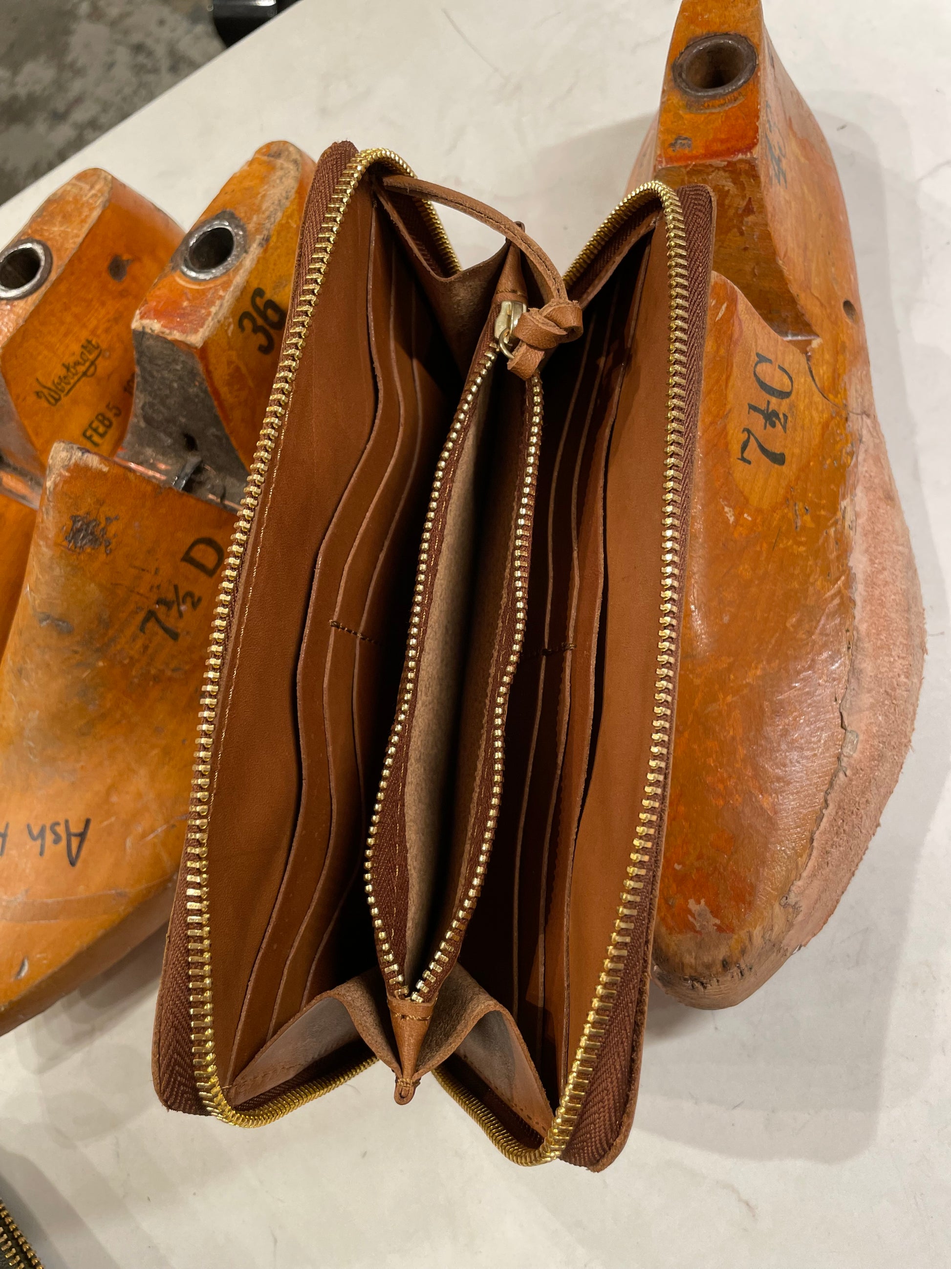 A classic beauty of quality and durability. The Leolo Zip Around Wallet is made of 100% full grain leather with durable nylon thread and a smooth, quality zipper. 8" x 5" (closed)