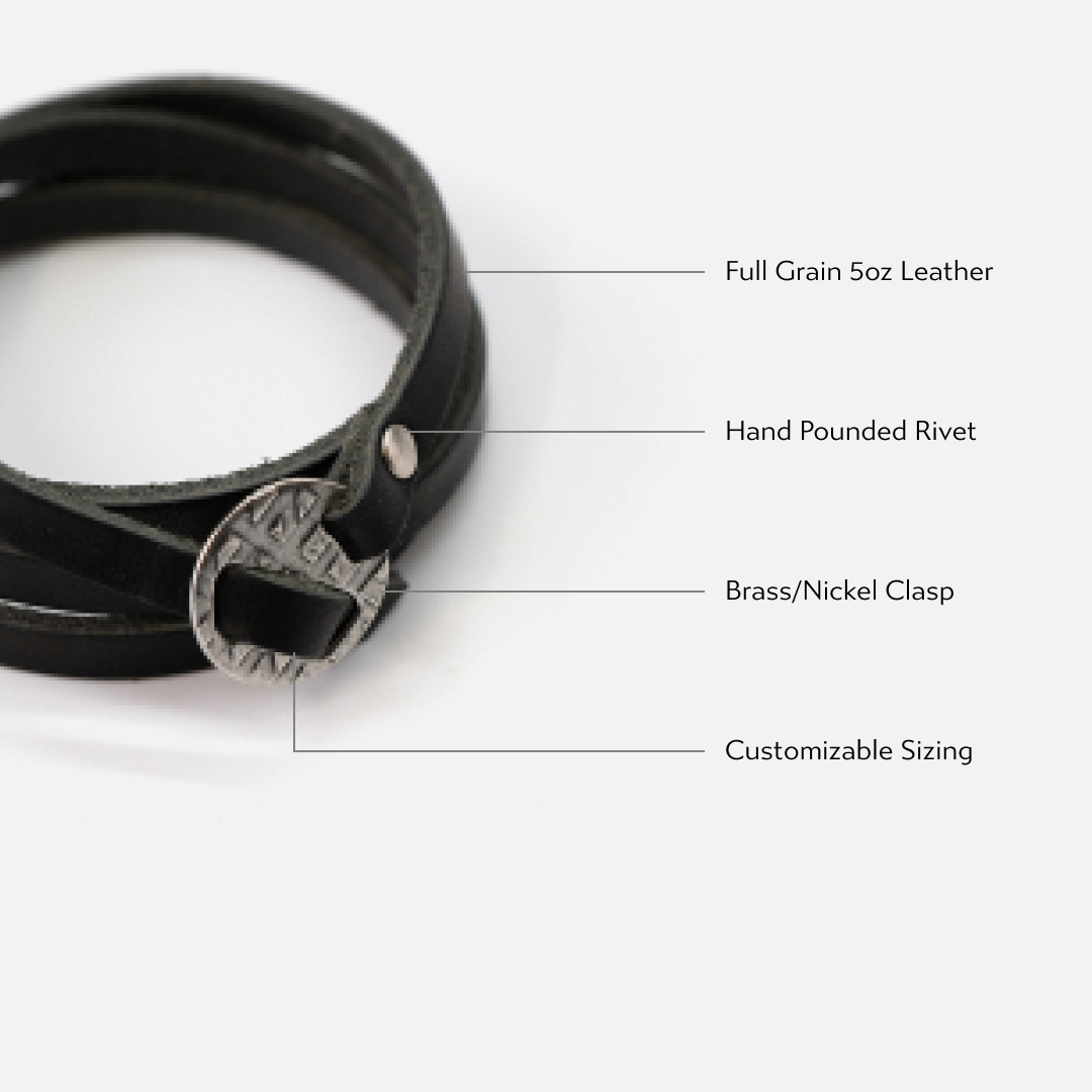 Fully customizable, full grain 5oz. leather, antiqued brass/nickel rivet, and clasp.