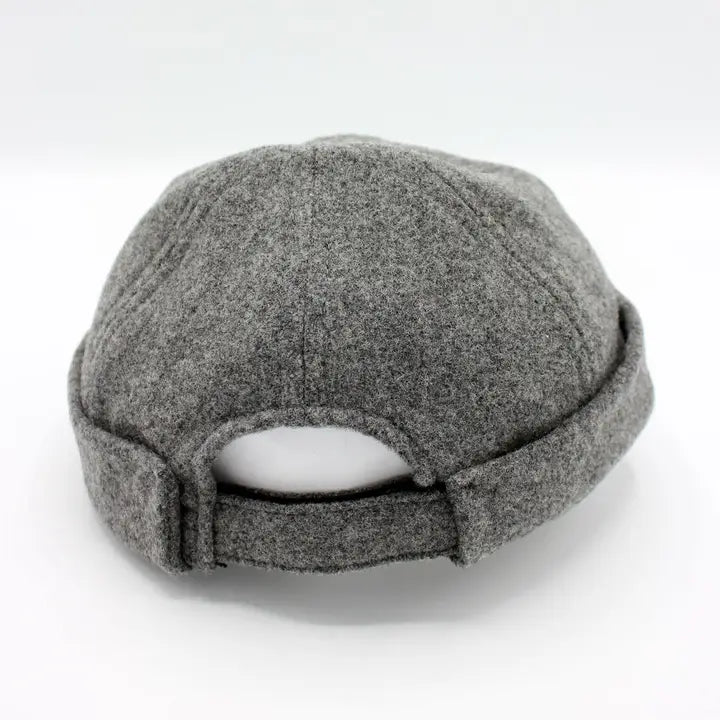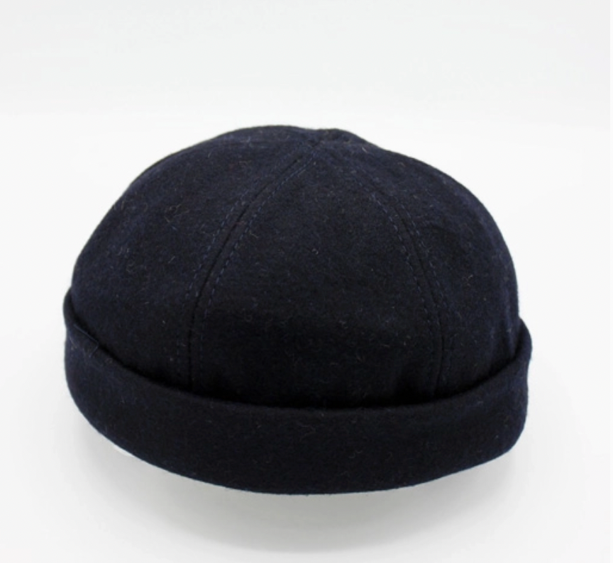 The Hologram Paris version of the “Miki Docker” Breton style wool hat with back Velcro adjustment. Simple and without an apparent logo.