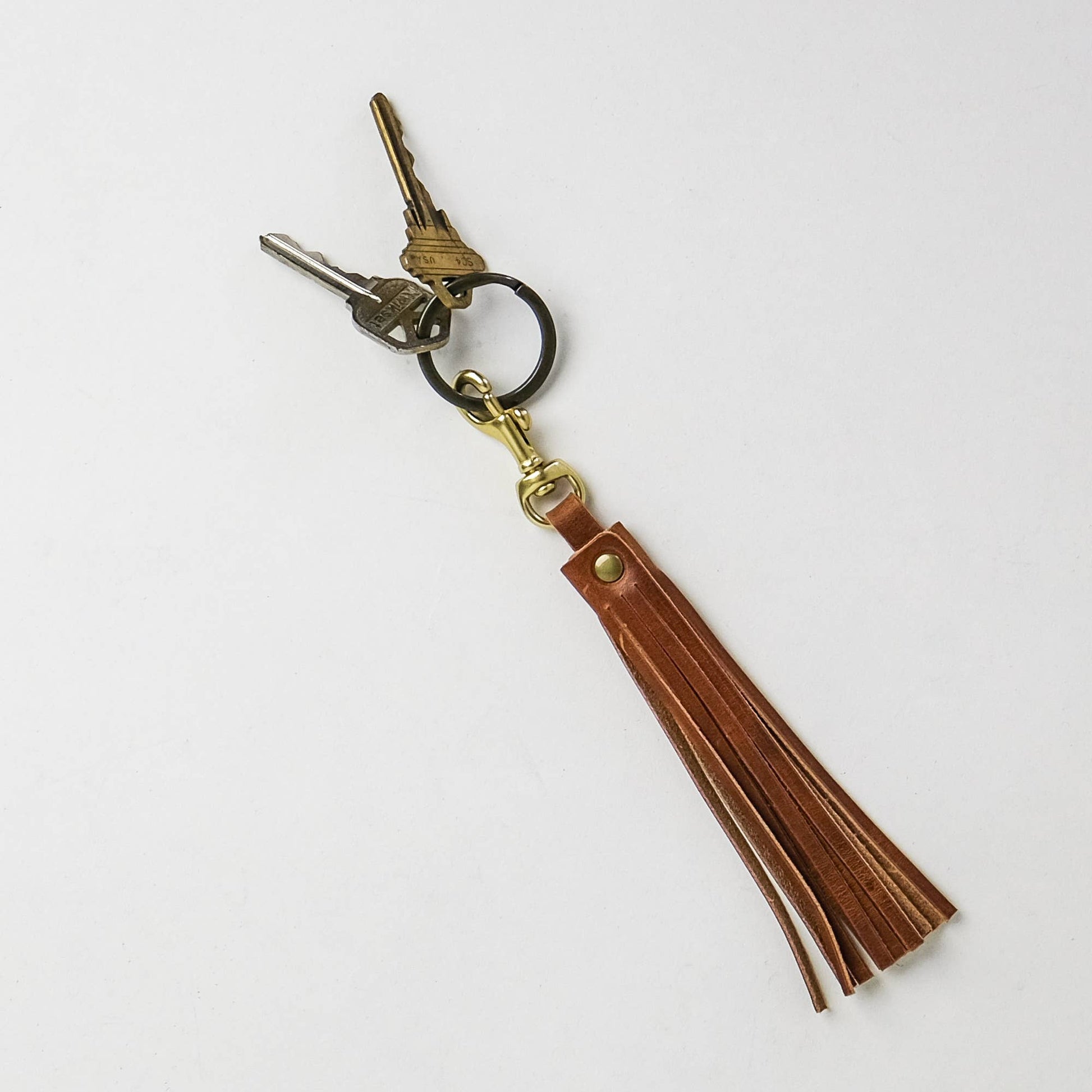 The tassel key clip is perfect for keys or as an elegant purse accessory. Attach to a wallet, clutch, or handbag for a classic upgrade. Our quality leather tassels are handmade in NC from American-tanned leather. Each tassel is made using high-quality, full-grain leather and a solid brass key clip.