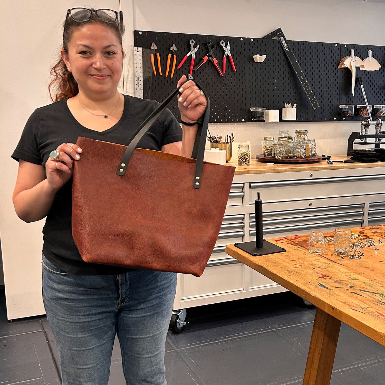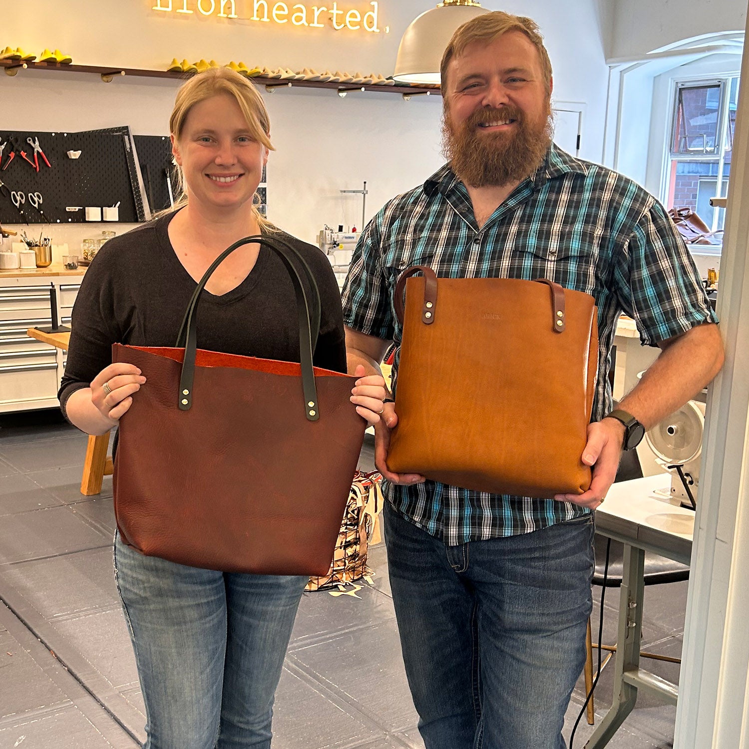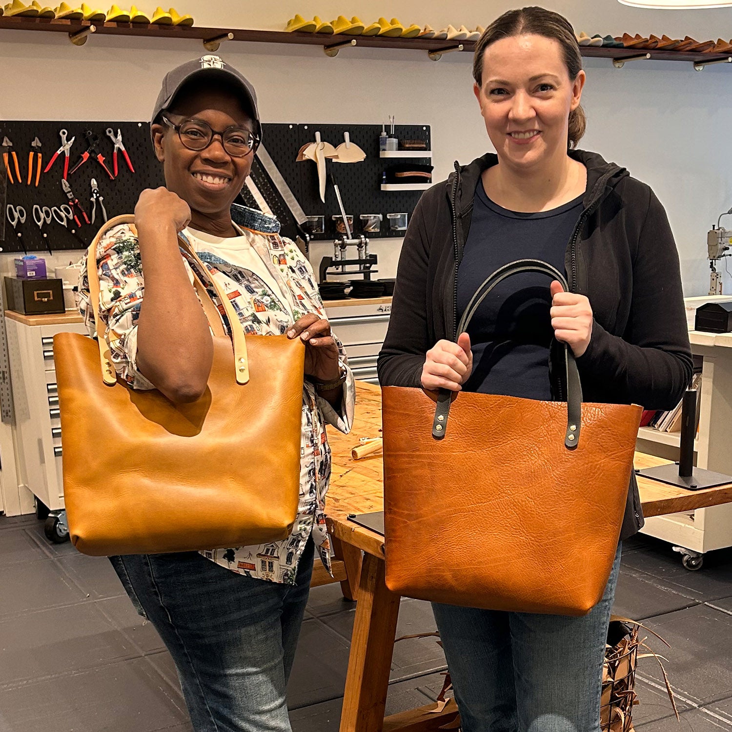 Join us for an engaging, hands-on tote-making workshop in Leolo's Pike Place Market Atelier. At the end of this workshop, you will leave with a beautiful, full-grain tote, complete with the solid brass or silver hardware you made!