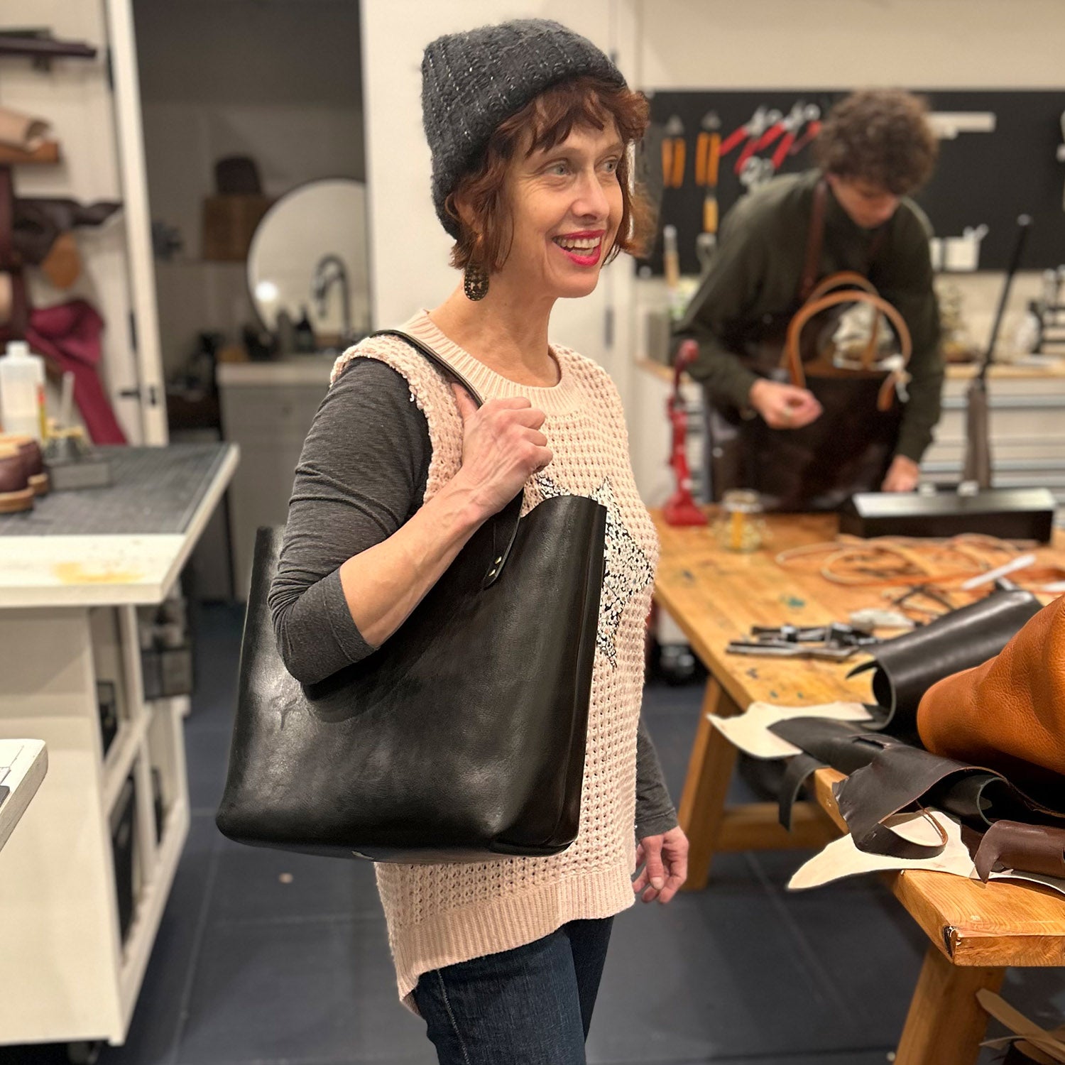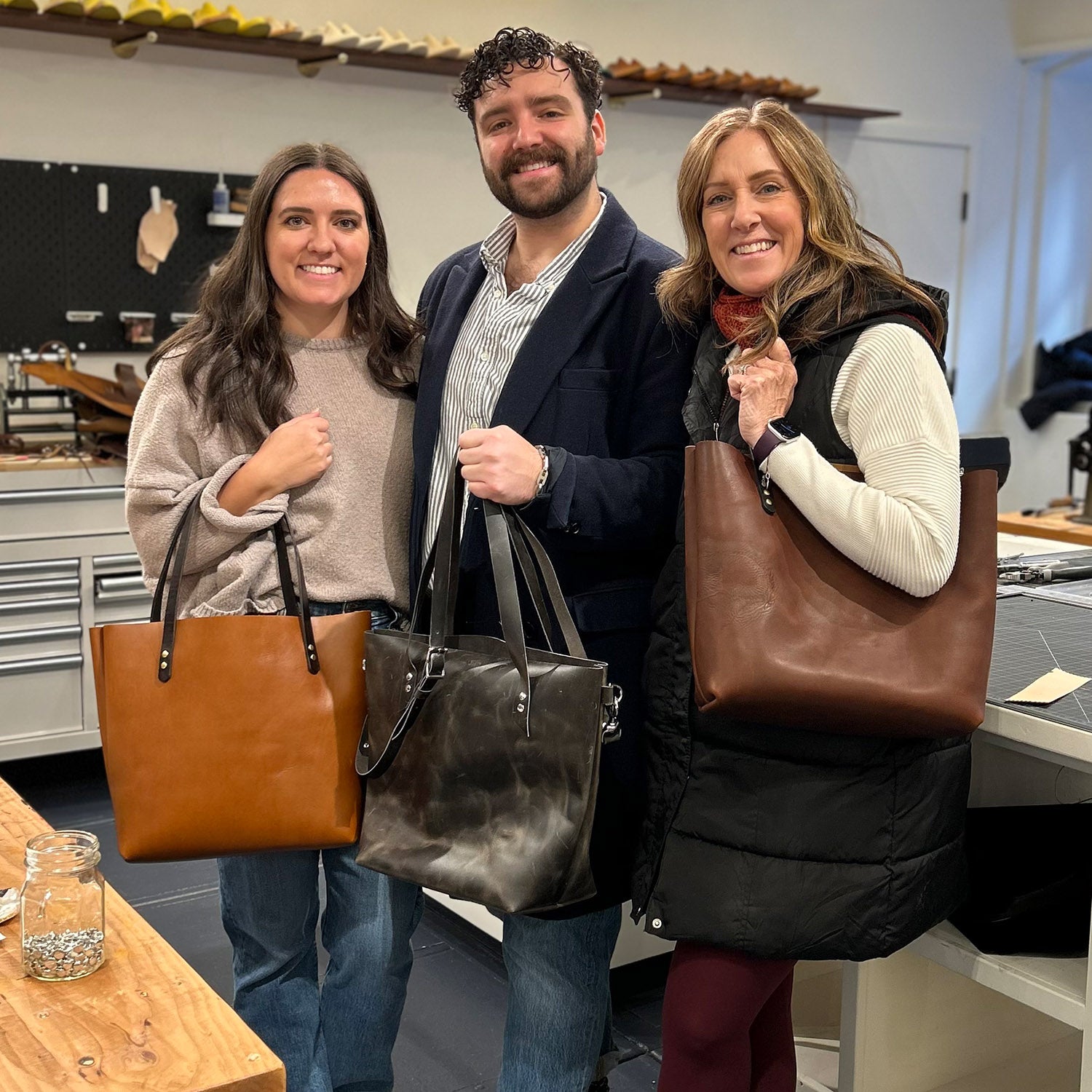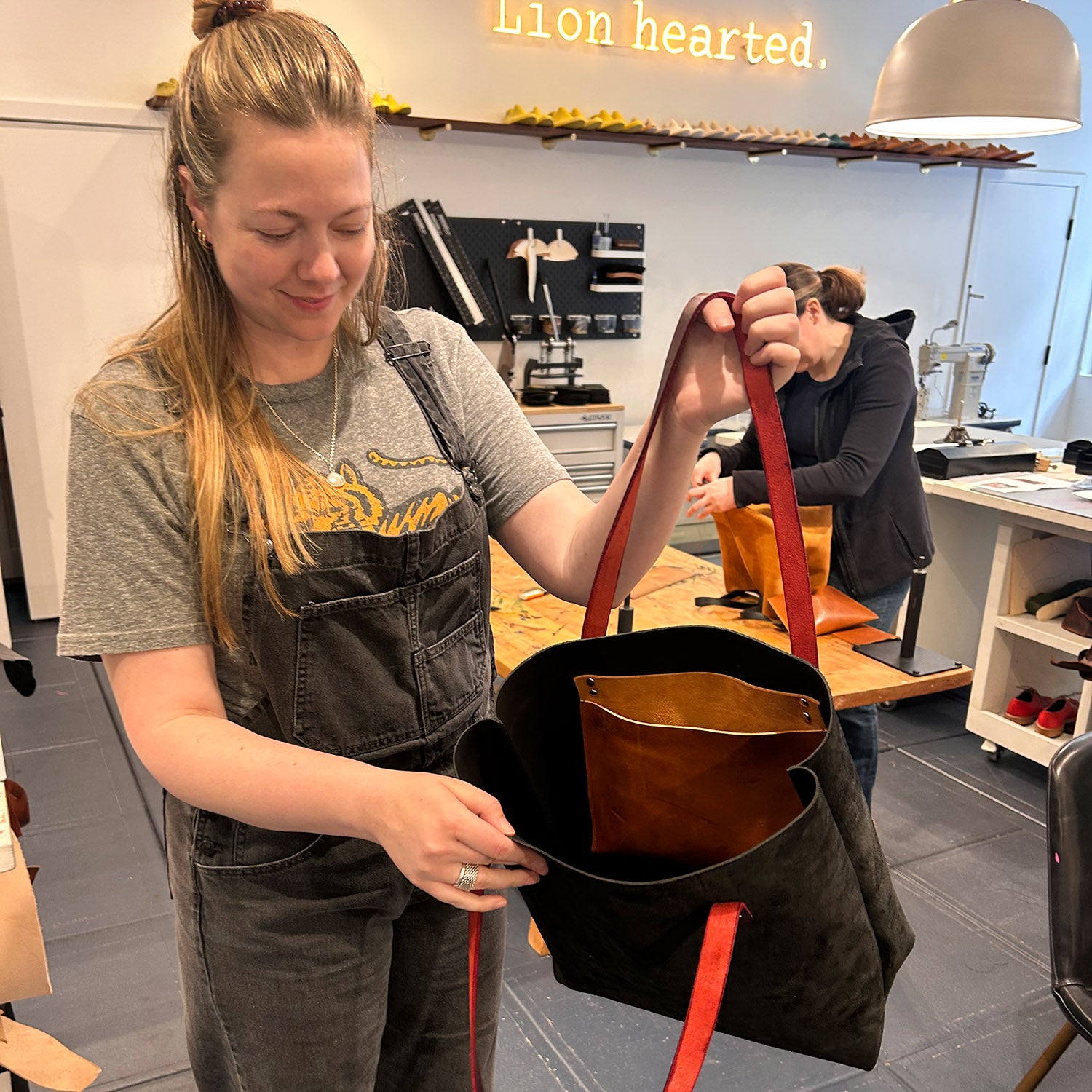 Join us for an engaging, hands-on tote-making workshop in Leolo's Pike Place Market Atelier. At the end of this workshop, you will leave with a beautiful, full-grain tote, complete with the solid brass or silver hardware you made!