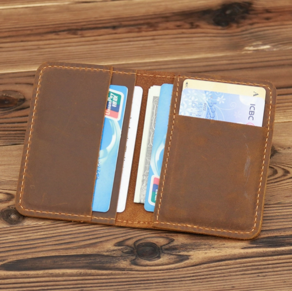 Made of genuine leather. Designed with pockets for cards and cash while remaining slim and neat.