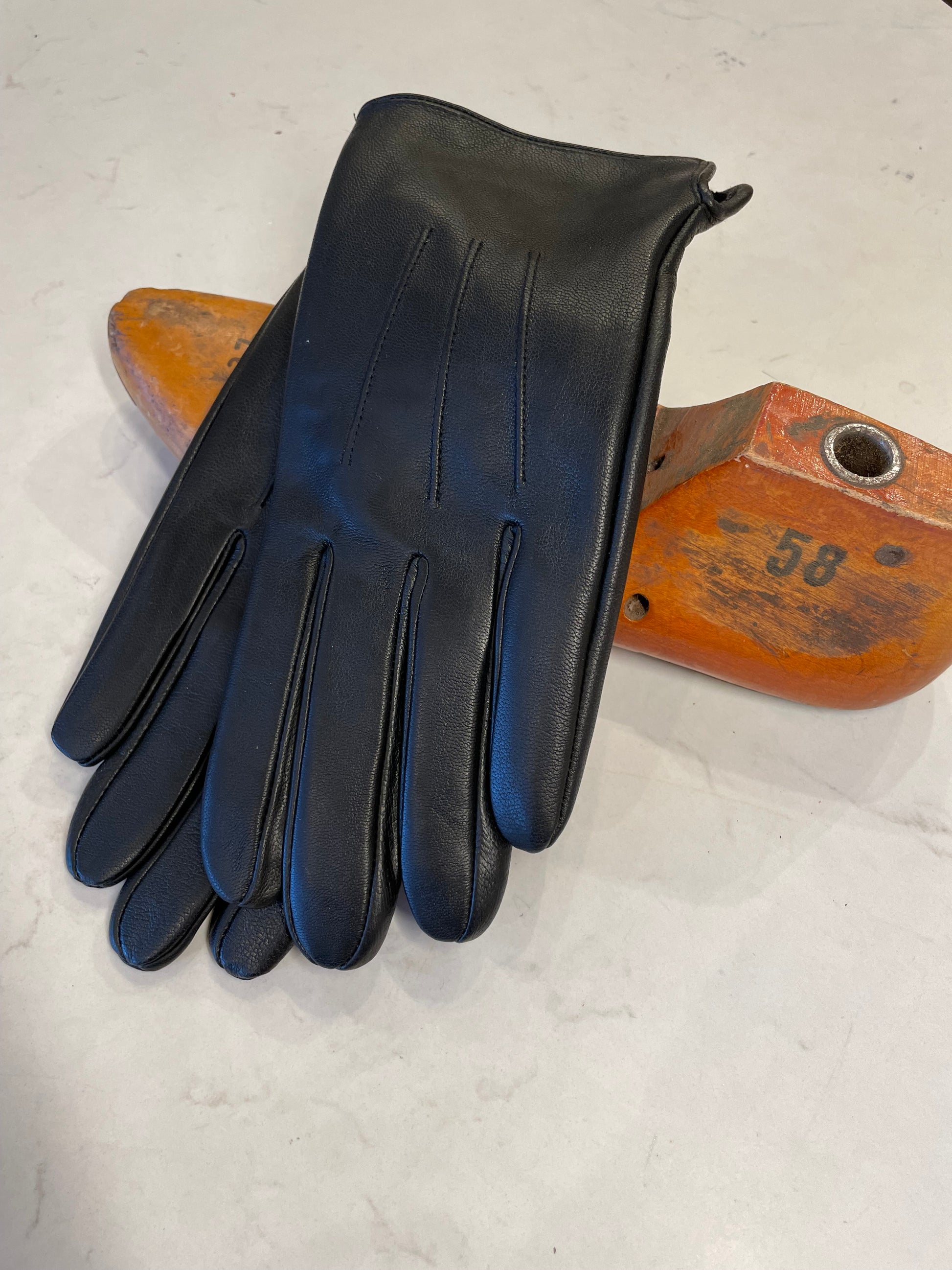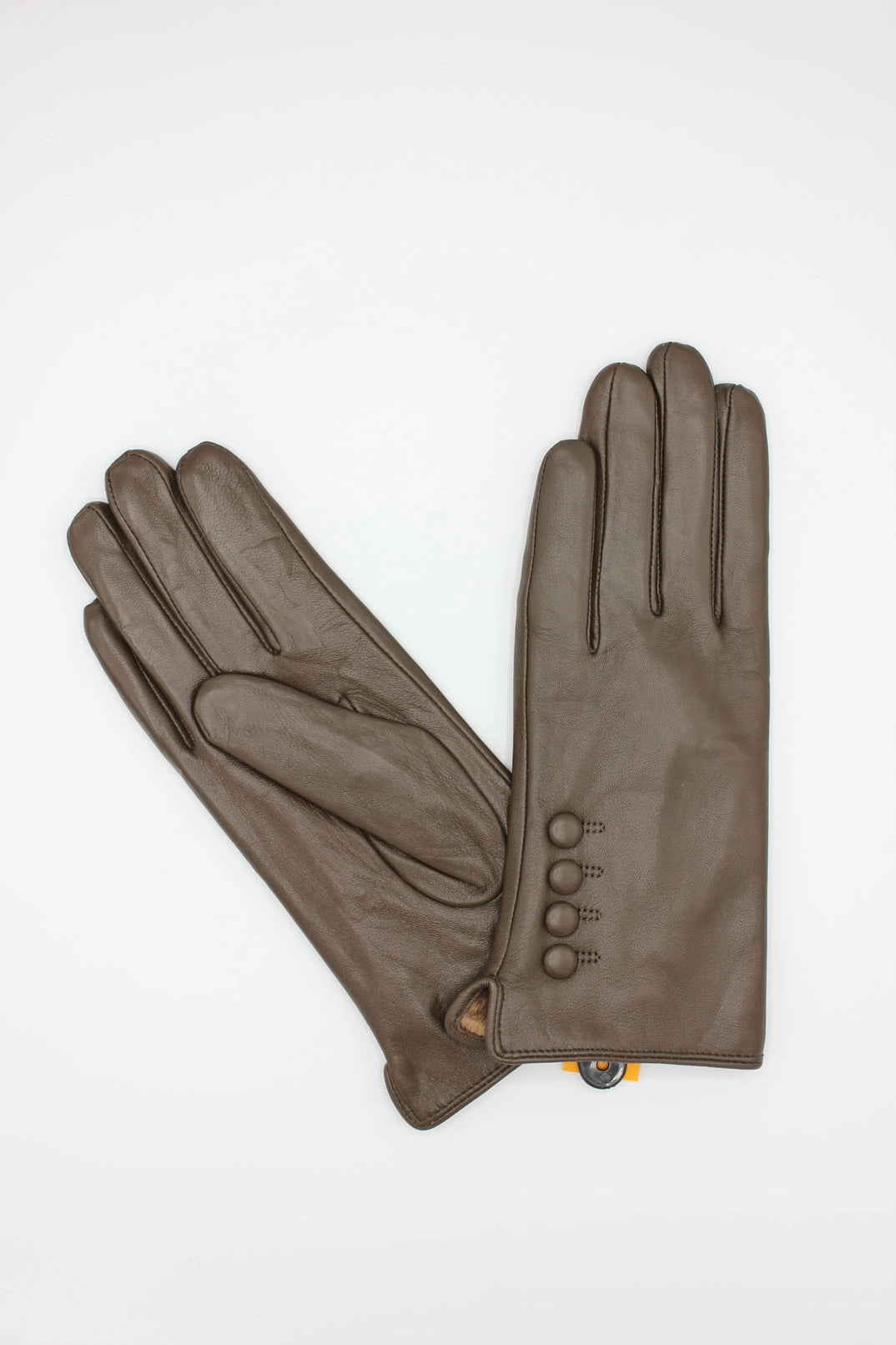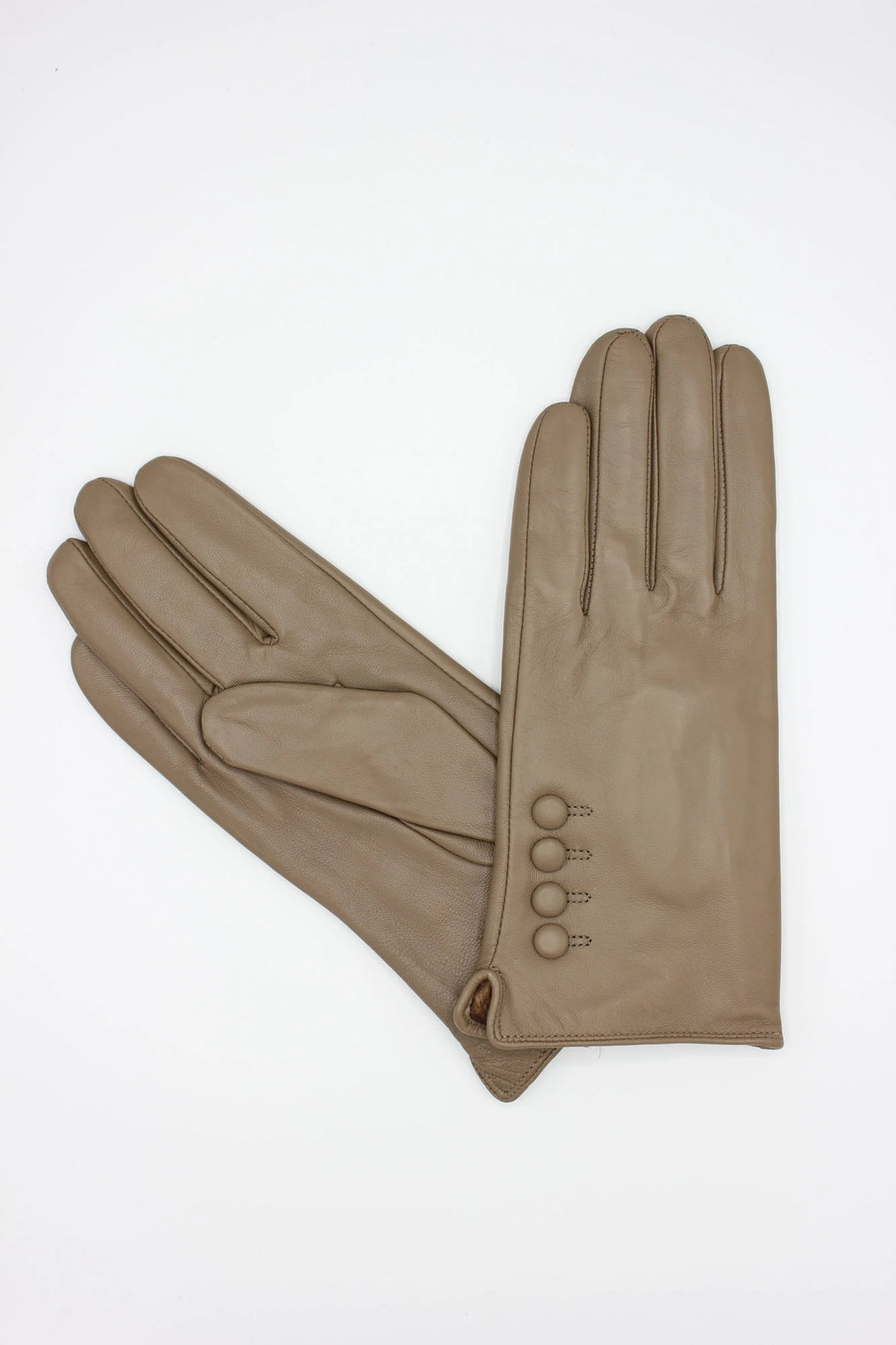 Supple sheepskin gloves with velvety liner. We absolutely love these gloves and highly recommend. 100% sheepskin with a fleece polyester liner that feels like velvet.